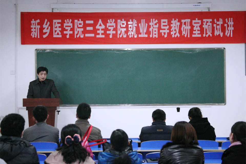 本网讯 为提高我院就业指导课程教师的授课水平,同时给广大教师提供一个学习交流的平台,3月15日下午,就业指导教研室在问学楼204教室举行了就业指导课兼职教师预试讲活动。预试讲邀请了新乡医学院就业指导教研室主任、国家高级职业指导