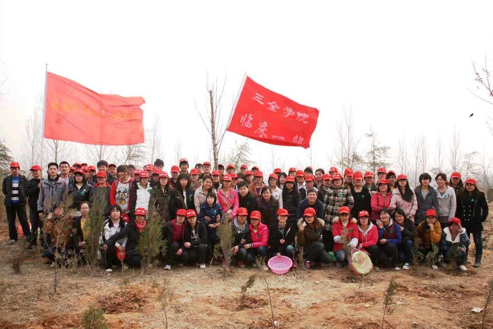 本网讯 3月10日下午,我院临床专业第一分部组织学生前往凤凰山开展义务植树活动, 百名“绿色使者”在辅导员姚朝宗、陈扬、常青的带领下高举院旗,戴着小红帽,提着取水工具,排成整齐队伍乘校车出发。
