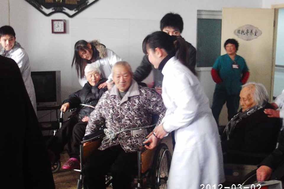 养老院职工热烈欢迎志愿者们的到来。同学们走进老人们的住处,与他们谈心、聊天,并为他们测血压、刮痧、拔罐、推拿,做虹膜检测、教他们做老年保健操,老人们很乐意并积极参与。在理疗过程中,老人们为同学们讲述了当年抗美援朝的故事,并要求同学们好好学习,坚持艰苦朴素的传统,为国家多做贡献。老人们热情地与志愿者交流,亲切地话家常,聊生活起居,看到80多岁老人脸上洋溢的笑容,志愿者们都很激动和兴奋。