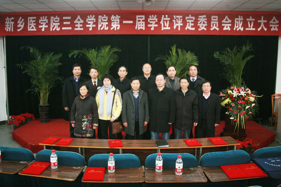 本网讯 为规范学位评审工作,进一步提高育人质量和办学水平,促进教育教学改革事业不断发展,学院研究决定,成立新乡医学院三全学院第一届学位评定委员会。2011年12月1日下午,我院第一届学位评定委员会成立大会在办公楼大会议室举行。院党委书记王志凯,党委副书记王金文,副院长秦国亮、王维勋、王彦杰、沈雁霞,第一届学位评定委员会全体成员出席大会,全体管理人员参加。会议由教务部主任王洪兴主持。