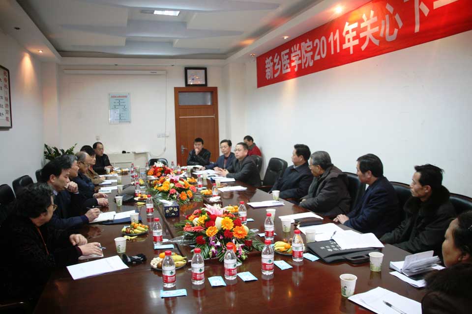 本网讯 11月25日下午,新乡医学院2011年关心下一代工作研讨会在我院举行。新乡医学院副院长陈兴华出席,学校关工委顾问李灵敏、李荣轩,常务副主任赵智超,统战部长、组织部副部长王宏玲,学校离退处书记、关工委副秘书长李保昌,我院院长杨捷、党委副书记王金文,各附属医院关工委负责人参加,党务办公室主任李健陪同。研讨会由王宏玲主持。