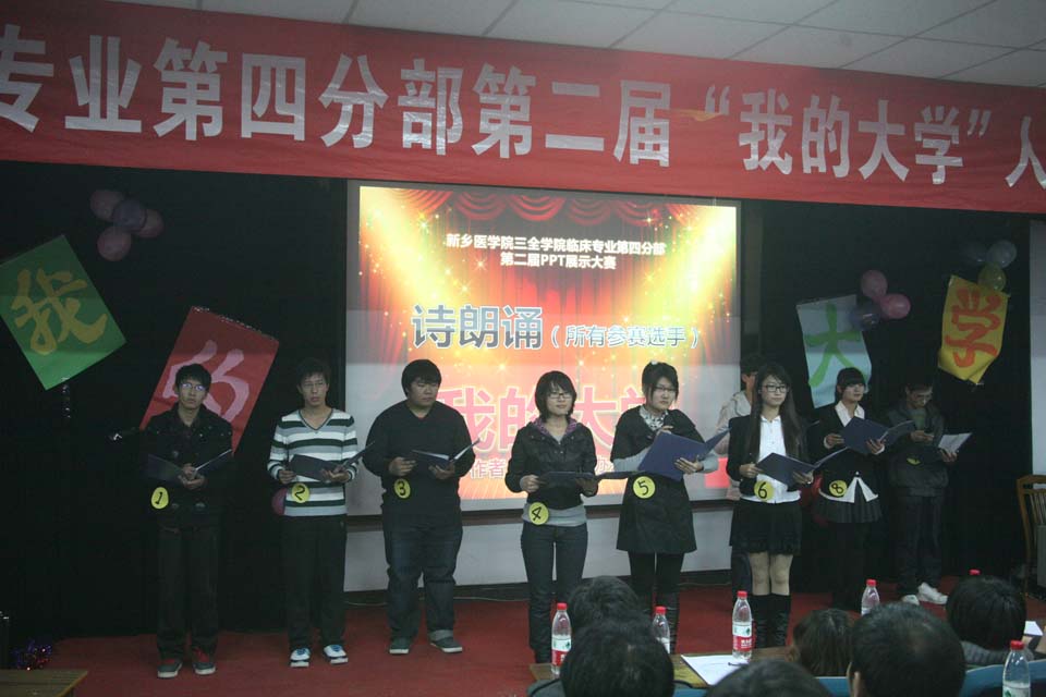 本网讯 11月24日晚,临床专业第四分部主办的第二届“我的大学”人生风采展示之PPT制作大赛决赛在办公楼大会议室举行。学院党务办公室、学务部、团委、资讯中心7位老师担任评委,学务部主任张钢作为嘉宾出席。