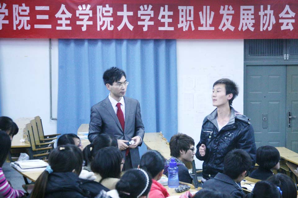 11月22日,我院在行政楼二楼小会议室和问学楼第六教室分别举办了就业指导专兼职人员培训和大学生职业生涯规划讲座。此次活动特邀上海向阳生涯管理咨询集团首席职业规划师、董事长洪向阳作为主讲嘉宾。