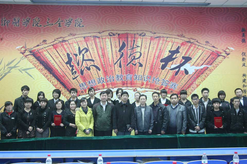 本网讯 11月17日晚,由我院资讯中心、学务部举办,临床专业第一分部承办的新乡医学院三全学院“懿德杯”思想政治教育知识抢答赛在问学楼二楼T教室举行。莅临此次大赛的嘉宾有工商银行牧野支行行长韩冬、新乡电视台外宣部主任乔学真、我院党委副书记王金文。资讯中心主任崔向前、学务部主任张钢、资讯中心陈圆圆担任评委。八百多名师生观看比赛。参加此次比赛的还有新乡电视台、新乡教育电视台等新闻媒体记者。