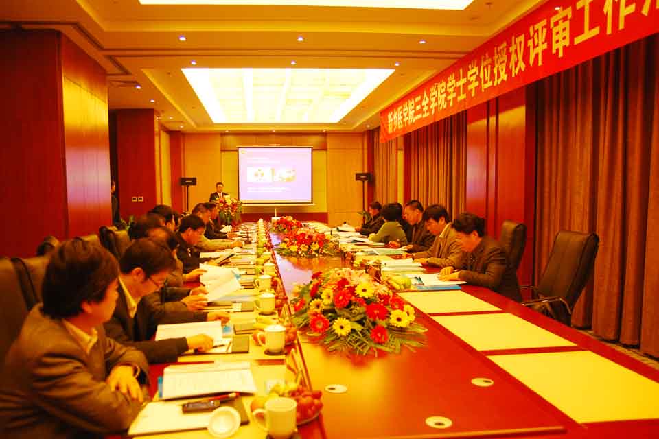 上午9时,新乡医学院三全学院申请学士学位授权评审工作汇报会在国际饭店第三报告厅召开。新乡医学院副院长毛兰芝,我院董事长陈逸飞及党政领导班子,新乡医学院基础医学院副院长杨保胜教授,生命科学技术系主任丰慧根教授,医学检验系主任王辉教授、副主任王明永博士,第一临床学院副院长郭明好教授,我院中层以上干部参加了汇报会。汇报会由我院党委书记王志凯主持。