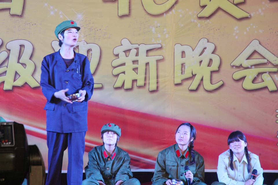 尽显现代动感元素的节目之后,民间艺术表演相继登台亮相:秧歌《年画》把我们带进喜庆祥和童年回忆;戏曲反串《对绣鞋》选段让我们体会到了不一样的梨园情;川剧变脸绝技让人惊叹之余更感受到一种神秘的色彩;民歌《美丽的心情》用高亢的音域编织了我们共同的憧憬;大合唱《剪羊毛》《我的祖国》用歌声唤醒我们对革命先辈们的敬意。让人印象最为深刻的是小品《高考1977》,艺术团的姑娘与小伙子们真情演绎了那群曾经追逐梦想、渴望知识的热血青年实现大学梦的辛酸历程,给现场同学以强烈震撼。