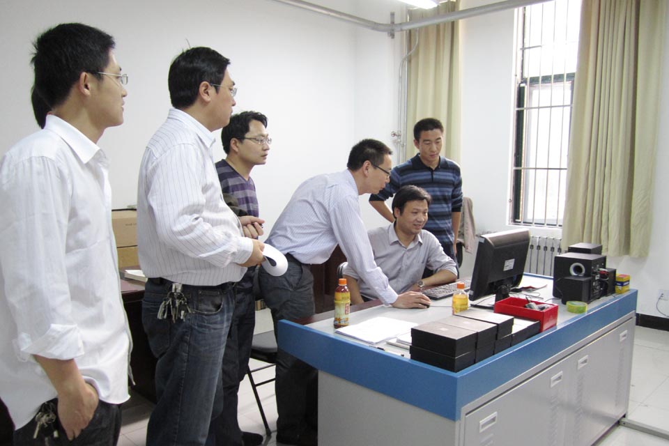 在教育技术中心工作人员的陪同下,王彦杰一行对问学楼多媒体新设备的各个环节进行逐一核查,对每个环节都亲自操作,细致询问,详细了解新设备的功能。