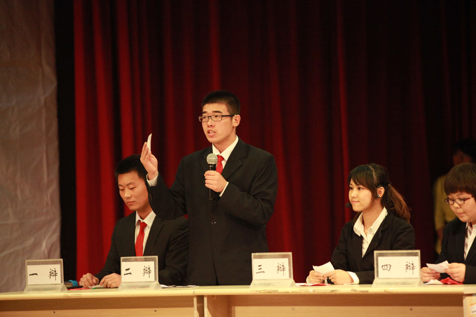 甲组(院系代表队)比赛决赛中,正方生命科学技术学院代表队与反方基础医学院代表队围绕“‘中国式过马路’现象应以政策管理还是思想引导为主”展开辩论。正方强调,政策管理与思想引导并举,但应以政策管理为主;反方则从内外因方面着手,强调以思想引导为基础,辅之以政策管理才是解决问题的关键。自由对驳,双方辩手妙语连珠。提问环节,观众都积极参与,选手们机敏回答。经过激烈角逐,甲组中生命科学技术学院摘得桂冠,基础医学院获亚军,基础医学院代表队二辩获甲组最佳辩手。