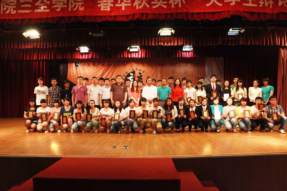 辩论赛现场颁发了各种奖项。医学技术学院获季军,药学院获优秀奖,护理学院获最佳组织奖;时代骄阳代表队获乙组冠军;山泉之声广播台代表队获丙组冠军,社团联合会大学生职业发展协会获亚军。现场还为有突出贡献的辩手与领队颁奖。