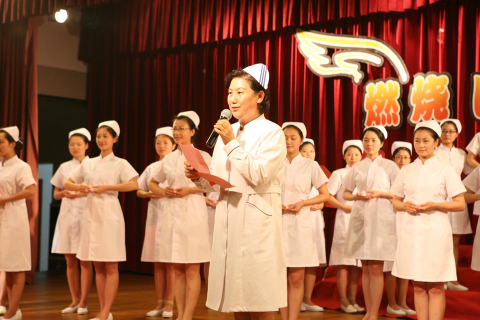 凤凰花开,骊歌将起, 6月14日下午,在馨飨苑三楼文化活动中心,护理学院为2013届护理专业526名毕业举办了首届毕业传光授帽仪式。仪式特邀北京武警总医院副院长、第43届南丁格尔奖获得者张利岩主任护师作为嘉宾,院长杨捷出席仪式,学院各职能部门、各院系负责人观摩活动,护理学院500余名毕业生共同参与授帽仪式。
