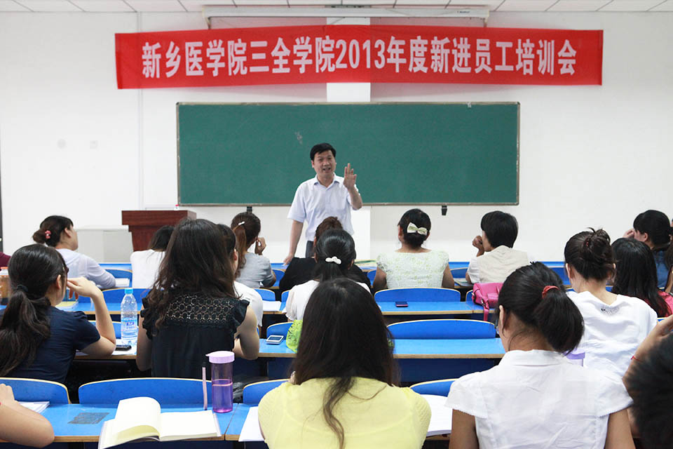 在培训开班仪式上杨捷和王彦杰向新进员工介绍了学院文化、历史、现状及未来发展方向。杨捷勉励大家重视学习,转变角色,认同学院管理制度,尽快融入到三全学院这个大家庭,同时希望大家珍惜缘分尊重他人,培养一专多能,为学院发展贡献自己的力量。