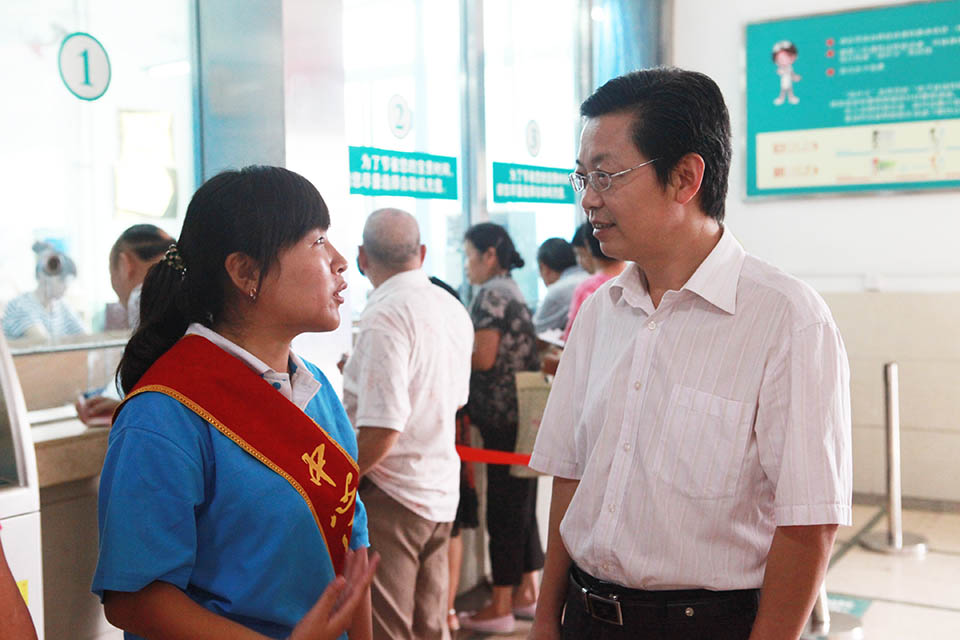 王培山高度赞扬了我院大学生体现出来的吃苦耐劳的精神热心的服务态度。王金文代表学校感谢中心医院提供良好的社会实践平台,强调青年大学生们一定要珍惜每次实践机会,在实践中发现问题,增长才干、服务社会。随后,王金文考察、慰问了现场服务的导医志愿者