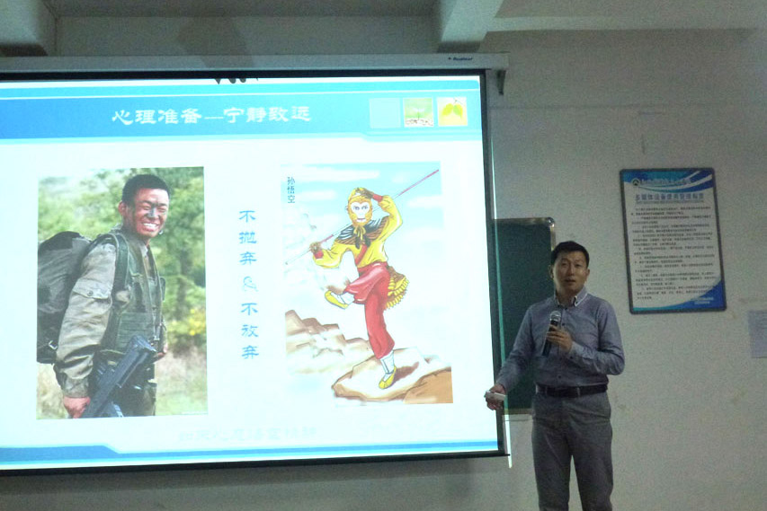 关长海以职业生涯规划“九剑”为线索,分别围绕“职业”、“胜任力模型”、“内、外职业生涯”、“辅导员实用技能”等内容展开讲解。讲座中,他结合经典影片《当幸福来敲门》里Chris Gardner和《功夫熊猫》里Paul的经历,为大家形象地展示了在求职应聘的过程中应采取的方式、方法和技巧,以及如何适应职场生活并最终获取成功。他旁征博引名人事迹和经典诗词,深刻地解读了职业定位、求职平台及个人在职场中不断提升自我的重要性,鲜明地诠释了清晰的职业梦想在职业生涯规划中举足轻重的地位;他还教授大家如何制作简历,列举求职过程中面临的常见问题,面试的基本流程及其本质,以及面试时的着装、礼节、表情、举止等细节,他采用“文件筐整理”和“无领导小组讨论”的模拟面试形式,讲授工作中处理问题的思维和方法。