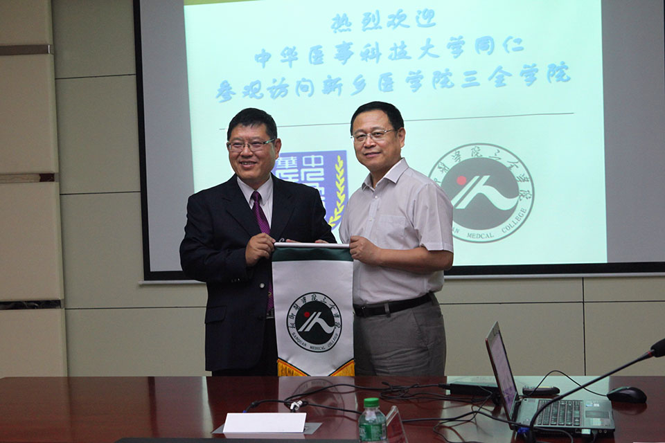 杨捷代表我院对林金鹏一行的到来表示热烈欢迎,并从学院发展历史、机构设置、主要领导、职员研究、在校学生、合作交流、实践教学、荣誉等方面详细介绍了我院情况。林金鹏对到访我院表示十分荣幸,同时他从学院设置、课程设计、教师研究、在校学生等几方面介绍了台湾中华医事科技大学相关情况。