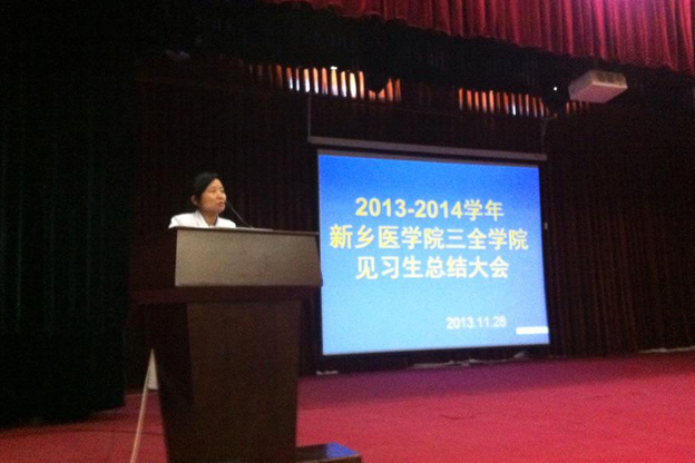 11月28日上午,我院在河南省人民医院科教大厦四楼多功能报告厅举行了临床专业学生见习总结大会。河南省人民医院教学科科长徐玉萍主持大会,河南省人民医院教学科戴玉雅、我院辅导员赵超建及2010级280名见习生参加了大会