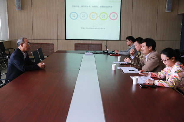 首先,王彦杰对史传高教授的到来表示热烈欢迎,并就我院建设发展情况、所取得的成绩以及转型发展战略等方面向史传高教授进行了讲解。随后,外国语言学系教学秘书裴丽华就本系概况做了简要介绍。史传高教授针对外语教学和本系管理方面提出了建设性意见,并表示将不遗余力地与大家协同一致,为我院建设高水平的外语教学队伍。