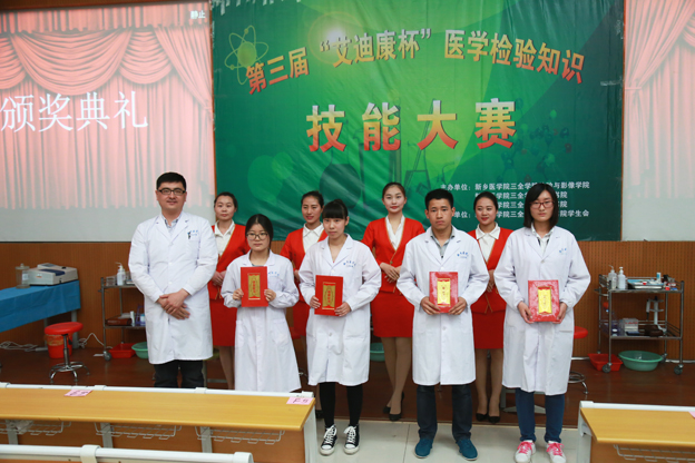 5月6日,第三届“艾迪康杯”医学检验知识技能大赛在平原新区第一教学楼D2教室举行。比赛特邀新乡医学院教授、研究生导师李平法,郑州艾迪康医学检验所临床实验室经理杨超、实验室负责人李雪英,新乡医学院微生物教研室主任郭庆合,新乡雅士杰检验所、第一届技能大赛冠军安禹炜担任评委。学院副院长王洪兴、党委副书记张钢出席,检验与影像学院贺志安教授、德馨书院党总支书记金靖芝、崇德书院党总支书记徐超,院系专业教师、书院相关老师以及医学检验专业500多名学生共同参与。