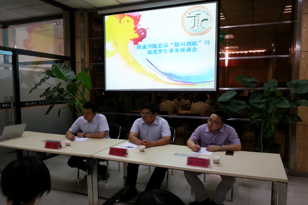 为了进一步了解学生对学院的需求,5月20日下午,精诚书院召开了首届“疑问到底”问询式学生事务座谈会。本次出席座谈会的职能部门负责人有学生事务发展部主任邱永建、总务部主任马波、教务部助理李一光。同时参加座谈的有精诚书院各年级学生代表。本次座谈会目的在于让学生代表与学校相关职能部门负责人面对面提出学生普遍关心的问题,由职能部门负责人提出解决的方案,让学生消除疑虑。