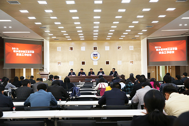 3月31日,学校在平原校区行政楼学术报告厅召开了新乡医学院三全学院2016年安全工作会议。党委书记王志凯,党委副书记王金文,副院长王彦杰、王洪兴,党委副书记张钢出席本次会议。校安全工作小组成员单位、平安校园创建责任单位第一责任人参加了会议。会议由王金文副书记主持。