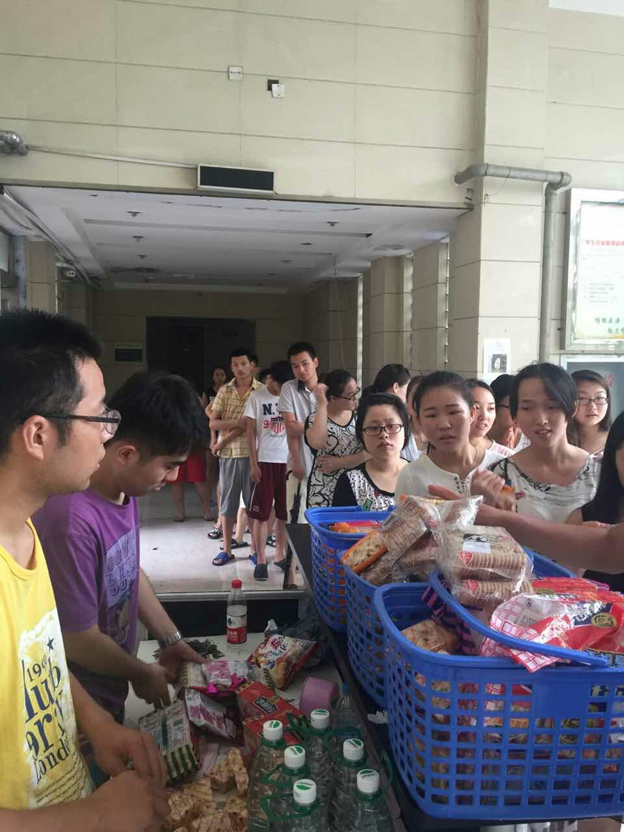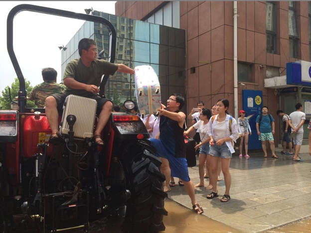 新乡校区,数十名教职工到公寓楼顶检查积水情况,到宿舍搬运学生物品。柴油水泵抽去公寓积水,皮筏运送学生及行李,后勤人员为学生发放食品和饮水,设法解决手机充电问题……全院总动员,抢险工作指挥有序,行动高效。防汛抗灾工作也牵动全院教职工的心,多个部门教职工在抢险现场相互配合,协同作战,第一时间沟通工作进展情况,校内QQ群、微信群等社交网络都围绕校园汛情的主题,群策群力,现场通报,点赞鼓励,一幅幅图片,一段段文字,饱含爱家的情怀和正能量。