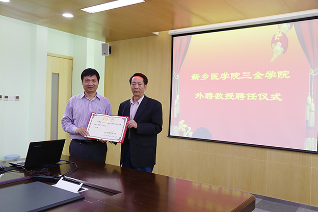 随后,教师教学发展中心主任李东亮简要介绍了马振江教授的基本情况,对马教授到岗表示热烈欢迎。王彦杰为马振江教授颁发聘书并合影留念。
