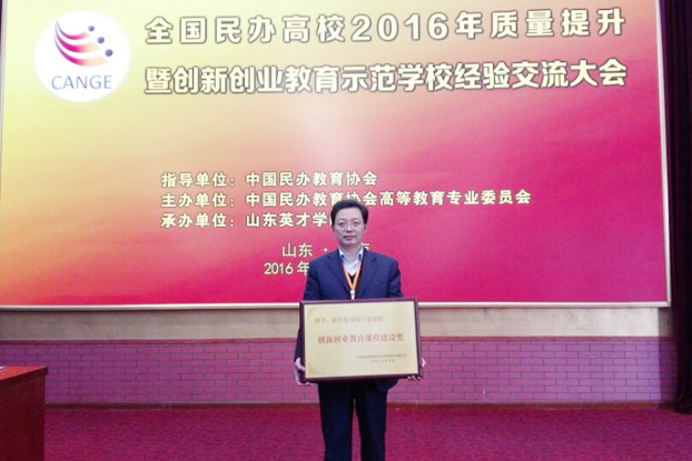 我院是全国民办高校获创新创业教育课程建设奖的11个高校之一。在多年的办学过程中,我院始终把创新创业教育作为全面提升应用型人才培养质量,提升办学水平的重要载体。通过深化通识教育体系建设,完善创新创业教育课程,充分整合各类教学资源,实施“两全两针对”战略,建立起富有专业特色“创新创业教育+素质教育+专业教育”三位一体的创新创业教育课程体系。