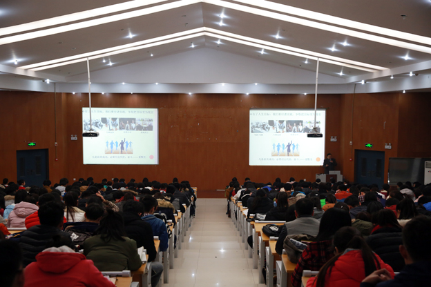 王现伟从“目标确立、自我定位、付诸实践”三个方面展开阐述。王现伟首先谈到目标确立的重要性,他表示人生规划首先要做的就是确立目标,若没有目标随波逐流,人生注定是失败的人生。他对如今大学生人生目标模糊不清,对大学生活抱着享受的现状做出具体分析,并对大学生如何树立人生目标提出建议。随后,王现伟论述了人生目标和实践密不可分的关系。他说,人生目标有终极目标也有短期目标,目标不等于幻想,实现目标就要付出行动,努力奋斗。王现伟还特别强调自我定位的重要性,他列举了马云、赵本山、陈泽民、王小宁等出身普通但通过自己努力取得成功的案例,引导学生正确看待自己,通过自己的努力去获得成功。