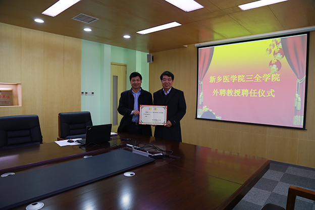 仪式开始,王彦杰致欢迎辞,他对常方高教授受聘为我院医学工程学院院长表示热烈欢迎。他向常方高教授介绍了三全学院的发展情况及我院向应用技术型大学转型的战略定位,并对常教授的基本情况进行了简要介绍。他表示,未来学院将努力搭建平台引进高水平人才,引领年轻教师研究好应用技术型人才的培养。