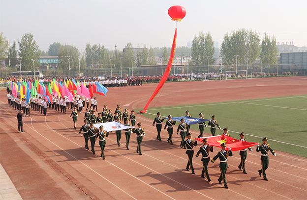 在庄严肃穆的国歌声中,本届运动会拉开序幕。