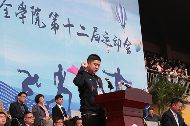 本届运动会组委会主任委员王金文为开幕式致辞。他代表运动会组委会,向精心筹备本届运动会的全体师生表示衷心地感谢,向刻苦训练、积极参赛的运动员致以良好的祝愿,向全体教练员、裁判员致以亲切的问候。王金文说,运动精神是一个民族生命力旺盛的标志,也是社会文明发展进步的体现。而一个合格的学生,不仅是态度端正、基础扎实、成绩优异的专才,更应是在各个领域里挑战自我、攻坚克难、勇攀高峰的通才。秉承“全面实施素质教育、全面适应社会需要、全面培育医学英才”的办学理念,我院已举办十二届运动会,体育运动会已经成为三全学院校园生活的重要组成部分,成为我院全面贯彻党的教育方针、落实素质教育的重要体现。他预祝全体运动员取得优异的成绩。
