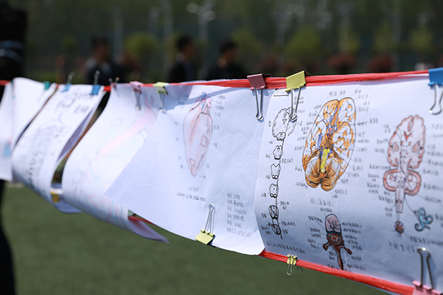 4月14日上午,由我院基础医学院主办的第二届“绘出生命色彩”解剖绘图大赛决赛在平原校区风雨操场举行。我院党委副书记王金文、教务长杜华贞出席,我院教学督导组组长、解剖学教授冯天祥、解剖学教研室主任刘恒兴、基础医学院副院长苗莹莹、首届绘图大赛特等奖选手谢亦丰担任评委。