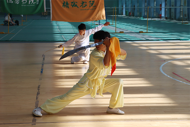 此次比赛分为表演项目、团体项目、集体项目三个项目,设为优秀团体奖、表演奖、集体奖。比赛在同学们的欢呼和呐喊中拉开帷幕,所有参赛对员穿着传统武术服装,时而跳跃,时而翻转,动迅静定、闪转腾挪体现出了传统武术的不同风格特点。各个书院的表演特点鲜明,动作规范,动静相宜、收放自如,舞台上的精彩表演引来台下观众的欢呼。参赛队员充分地向大家展示了平时刻苦训练才会有好的成绩。无论是刚柔并济的太极拳,还是滚入滚出的少林拳,亦或是灵动优美的剑姿,亦或是红缨飞舞,无不彰显着中华武术的博大精深。在最后的集体项目中,和着宛转悠扬的琴声,选手们时而沉肩坠肘、以意行气,时而上下相随、招势相连 ,他们用一招一式展现着武术的宁静致远,刚劲有力。他们坚毅的脸庞表达着对武术的热爱,激扬的斗志诠释着青春的魅力。观众热情饱满,场内掌声、加油声此起彼伏,欢呼声响彻整个体育馆。