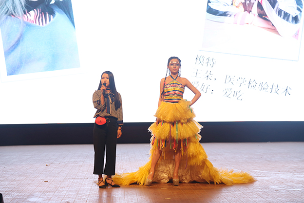 经过层层选拔,共有十位选手入围决赛。比赛分为专业组和兴趣组,每组各五位选手,参赛内容为“创意妆容”,选手们需在一个小时内完成自己设计的作品,并搭配创意服装与妆容进行展示。比赛伊始,十组选手开始在舞台两侧紧张有序的筹备自己的作品。一个小时后,选手们完成华丽蜕变,现场迎来了比赛的高潮-选手魅show。随着音乐的节拍,模特们扬起自信的微笑,走向T台前端,展示自我,同时各组选手对作品的创作主题、创作理念、创作方法及灵感来源进行解说。其中,专业组3号选手冯雅澜的灵感来自于热播剧《人民的名义》,用“纸币”拼接的长裙别出心裁,提示大家对金钱“取之有道”;兴趣组4号选手杜艳楠的创作灵感来自于对未来工作的憧憬,小故事大梦想,只有心怀梦想,才能方得始终。选手们的创意鲜明又贴近生活,妆容和服饰的搭配相得益彰,为观众们带来一场华美的视觉盛宴。