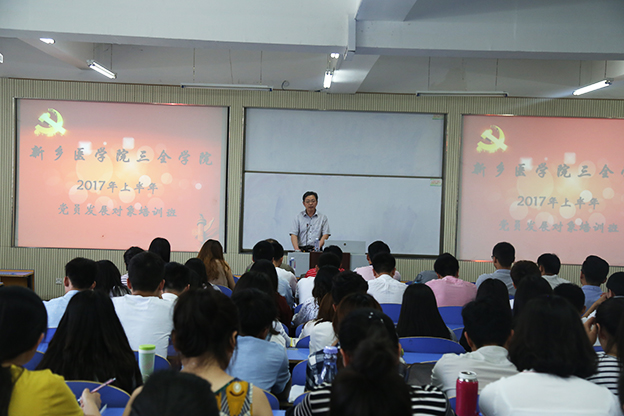 为进一步加强入党教育培训工作,提高发展党员质量。5月20日至21日,我院在平原校区谨学楼B102教室举办了2017年上半年党员发展对象培训班。新乡医学院社科部毛泽东思想与中国特色社会主义理论体系概论教研室主任史伟、学院党委副书记王金文,以及我院160余名学员共同参加了开班典礼。典礼由党务办公室主任吕莎主持。