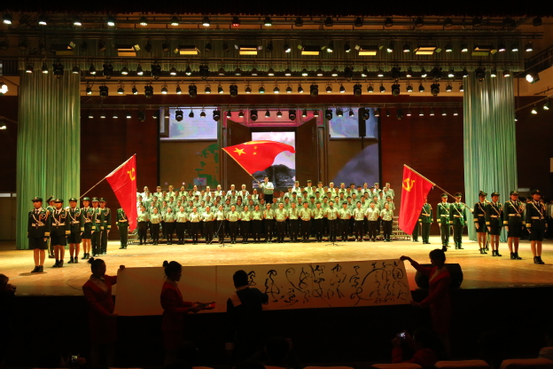 活动开始前,全体起立,齐唱国歌。本场比赛分为诵读和舞传经典两个环节,展示书院特色与魅力。“五花马,千金裘,呼儿将出换美酒。”仁智书院百名学子齐朗诵李白的《将进酒》,带领大家走近李白,感受他的羁傲不训、自信豁达;“彼老朽者何足道,彼与此世界作别之日不远矣,而我青年乃新来而与世界为缘”;羲和书院的《青年中国说》激荡着青年人的热血方刚,振聋发聩;而精诚书院的《沁园春,雪》朗诵人员全体身着军训服,不仅赞美了祖国山河的雄伟和多娇,更赞美了今朝的革命英雄,抒发毛泽东伟大的抱负及胸怀;此外,还有崇德书院带来的曹操的《短歌行》,表现了曹操举酒狂饮,慷慨而歌之的悲壮场景;德馨书院带来的岳飞的《满江红》,表达了德馨学子“功名是我所期,企与尘土同埋”的的壮志豪情,同样使全场沸腾。