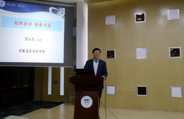 12月20日下午,河南医学科学院副院长郭永军应邀来我校做《创新驱动,健康中国》专题讲座。讲座在我校平原校区行政楼学术报告厅举行,我校副院长王彦杰出席,科研部、临床学院、教师发展中心的部门负责人及百余人共同聆听。