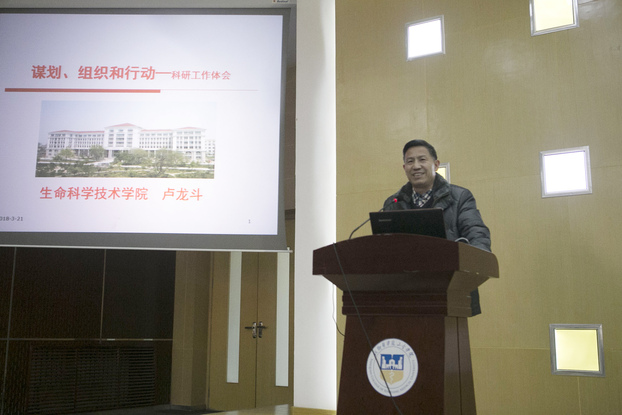 接下来,生命科学技术学院、外语系、思想政治理论课教学部、医学工程学院、仁智书院、崇德书院作为2017年度年终科研考核优秀单位分享了他们在科研管理工作中的宝贵经验。生命科学技术学院院长卢龙斗教授从“科研工作回顾、谋划起来、组织起来、行动起来”四个方面全方位介绍了生命科学技术学院自2015年以来科研成果从“十无学院”到“十项突破”的内涵式转变历程,“不在于有无空间、不在于有无设备、不在于有无项目、不在于有无经费,关键在于想干事、能干事、能干成事的人才”;思想政治理论课教学部主任王炜烨介绍了他们如何在人员少、教学任务重的现状下仍然取得了非常显著科研成果的经验,即“高度重视,加强管理,教师积极投入”。