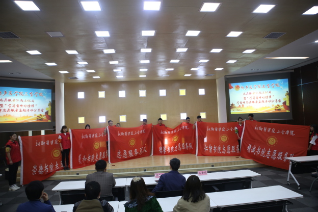 3月29日中午,我校志愿服务队成立仪式暨学习雷锋好榜样”志愿服务主题活动分享会在平原校区行政楼三楼学术报告厅举行。我院党委副书记王金文、学务长邱永建出席,学务部负责人及各书院团总支书记、二级学生组织指导老师、志愿者代表200余人参加。仪式由团委书记马素娟主持。
