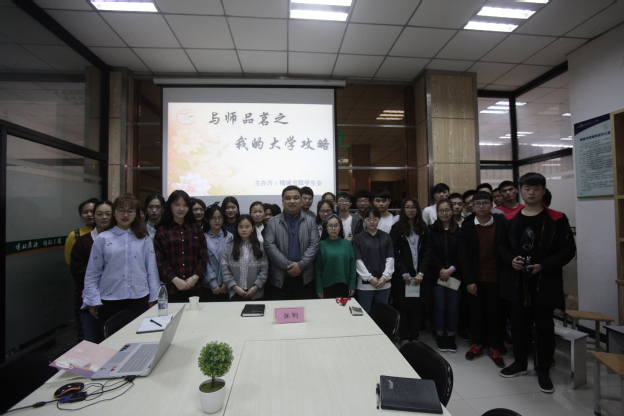 活动伊始,张钢结合学习工作上的经历、经验,并结合当前形势,与同学们分享学习、工作上的心得体会。教导同学们要紧跟新时代,牢记新使命,活跃新思想,迈向新征程。作为大学生要巧妙处理好学业、生活、情感等方面的问题,运用有效的学习方法圆满完成学业,度过充实的大学时光。