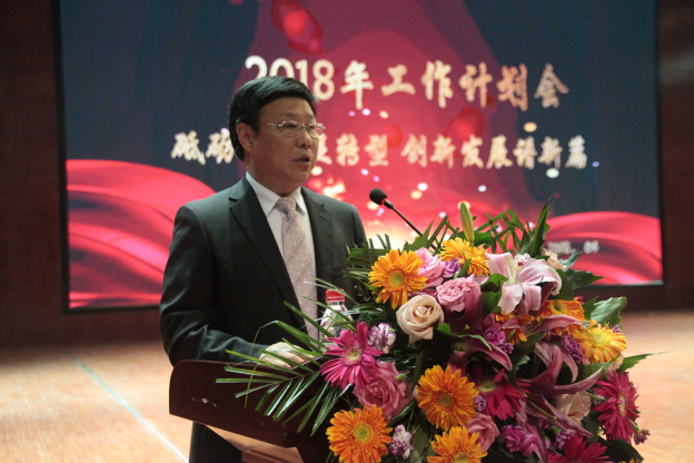 王志凯作2018年工作部署。他首先整体回顾了学校2017年工作,并高度肯定了学校取得的各项发展成就。随后他指出,学校2018年工作的总体要求是:深入学习贯彻党的十九大精神和习近平新时代中国特色社会主义思想,以建设高水平、有特色、应用型、健康服务业大学为目标,以高质量特色发展为主线,强化以学生为中心的教育理念和教育模式转变,促进学校人才培养供给和大健康产业需求结构要素全方位融合,加强内涵建设,推动学校各项事业再上新台阶。接着,他宣读了学校2018年“完成后勤社会化改革和行政部门大部制改革,稳步实施财务全面预算,简政放权,激发学校、书院办学活力”“做好学校学科建设工作的顶层设计,围绕转型发展凝练的方向,聚焦学科特色方向,加强应用型科学研究,优化、整合科研团队,有序推进学科平台建设,增强产学研合作和服务地方的能力“等九项重点工作,并从“继续做好顶层设计,不断深化体制机制改革;持续深化教育教学改革,全面提升教育质量;优化学工体系,进一步激发人才培养活力;强化师资保障,提高人才队伍建设水平;改善办学条件,夯实转型发展根基、加强组织保障,凝聚学校发展向心力”六方面作了整体部署。他强调,面临错综复杂、竞争激烈的高等教育发展态势,大家要保持忧患意识、危机意识、竞争意识,要斗志昂扬、齐力协力,为实现成功转型,为建成地方性、高水平、有特色的新型高等医学院校而努力奋斗!