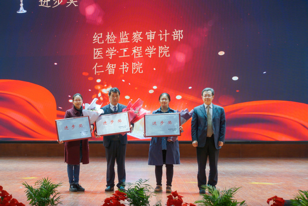 会议表彰了“2017年度十佳人物”:马佳、石霞、张一莉、苗莹莹、赵云娟、赵超建、徐利萍、姬国杰、黄闻闻、谢静;“优秀教研室(实验室)”:素质体验教研室、价值情怀教研室、化学教研室、人体解剖学教研室、助产教研室、生物化学与仪器学教研室、卫生事业管理教研室、外总教研室、药理学教研室、发酵工程教研室、电子技术教研室、英语专业教研室、毛泽东思想和中国特色社会主义理论体系概论教研室、武术与体操教研室、现代生物学实验室;“创新项目奖”:学务部、生命科学技术学院、检验与影像学院;“进步奖”:纪检监察审计部、医学工程学院、仁智书院;“目标完成先进单位”:党务办公室、院长办公室、发展战略与考核部、基建部、生命科学技术学院、思想政治理论课教学部、崇德书院。学校领导依次为获奖个人和单位颁奖。