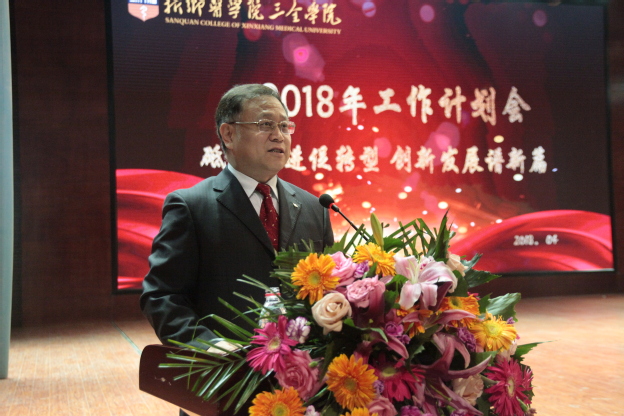 最后,杨捷总结:“对学校来说,2018年是一个考验年。时间与机遇都稍纵即逝,我们等不起,更拖不起。我们必须有定力,有毅力,有紧迫感与使命感,勇敢担起责任,为建成地方性、高水平、有特色的新型高等医学院校做出新的、更大的贡献!”