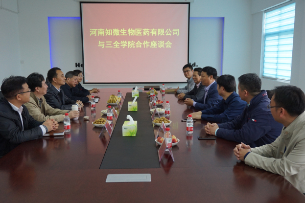 4月18日下午,我校与河南知微生物医药公司合作签约仪式在知微生物医药公司会议室举行。知微生物医药投资方王氏集团总经理王玉桥、知微生物医药公司总经理李伟、我校党委书记王志凯、副院长王彦杰出席,双方相关部门负责人参加。
