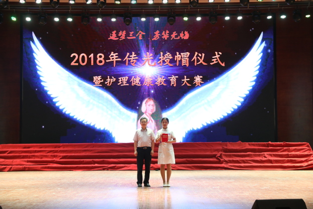 5月18日下午,我校在平原校区闻德大礼堂隆重举行2018年“逐梦三全,芳华无悔”传光授帽仪式暨护理健康教育大赛。学校党委书记王志凯,党委副书记王金文,副院长王彦杰,教育总督导毛兰芝,教务长杜华贞出席,护理学院、学务部、德馨书院、崇德书院的部门负责人及即将走向临床一线实习的近千名护理学专业学生参加。