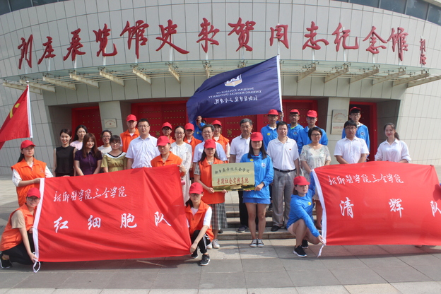 挂牌仪式上,杨红军与王金文分别致辞并共同揭牌,宣布新乡医学院三全学院暑期社会实践基地正式成立。挂牌仪式结束后,我校师生在讲解员的带领下参观了史来贺同志纪念馆,一幅幅宝贵的图片及文字资料,生动的反映了优秀共产党员史来贺同志多年来带领群众筚路蓝缕,艰苦奋斗、开拓创新,由贫穷落后走向辉煌的艰辛历程。广大师生眼含热泪,感同身受,真切地体会到了刘庄作为社会主义新农村建设的典范,全国农村党的基层组织建设的旗帜,一代代刘庄人艰苦奋斗的党的优良作风和拼搏精神,进一步加深了对十九大精神的理解。参观结束后,仁智书院及精诚书院社会实践队员深入刘庄开展义诊、汇报演出、寻访优秀党员等活动。