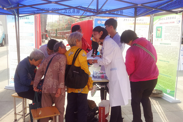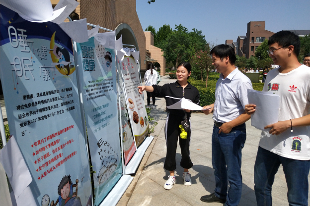 本次系列活动共有近20个宣传项目,科普内容包括心肺复苏术的急救讲演、“新发展理念”宣传、康复辅具博览、牙周病预防知识宣传与问卷调查、关注眼健康咨询服务、网络安全宣传等。其中,护理学院开展的急救知识在身边—心肺复苏术讲演,在活动现场不仅利用模拟人为大家演示急救过程、详解操作规范,现场行人跃跃欲试,而且免费为群众测量血压、检查身体状况,形成了活动现场一道独特而靓丽的风景线。口腔技术学院的师生利用自己的专业优势,在现场开展了问卷调研,并认真解答参与调研者的牙周病问题,积极普及牙周病预防知识。精诚书院通过发放宣传册和开展沙龙的形式为同学们普及口腔健康知识。光明眼科学院通过设立服务台,现场帮助同学们调整、维修眼镜。检验与影像学院通过海报与讲座对HPV的检测、宫颈癌的预防进行科普。外语系通过对学校周边农村老年人发放宣传册进行知识普及。崇德书院通过主题班会和宣传栏将网络安全宣传到了每个同学的心中。