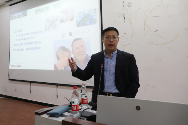 随后,在教学楼D1教室,杨磊以“三全学院-河南宏力医院院校联合培养优秀护士项目”为主题,面向2016级护理专业本科500余名学生进行了宣讲,着重介绍了宏力医院的概况、智慧护理信息系统及CCC国际护理术语等,鼓励护理专业同学把握本次校企(院)合作机会,增强自身竞争力,并期望项目能够合作成功。