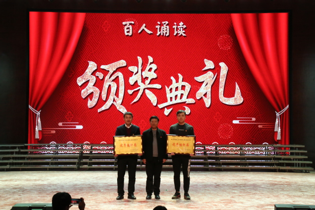 颁奖仪式上,各位领导嘉宾为组织、参与“百人诵读”比赛获奖的书院和个人颁奖荣获本次活动冠、亚、季军的分别是羲和书院、仁智书院、精诚书院;荣获优秀指导老师奖的是朱性海、徐利萍老师;荣获优秀组织奖的是羲和书院、仁智书院。
