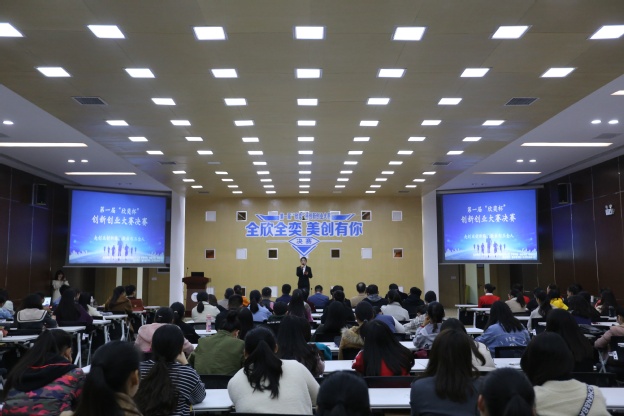 11月28日, 我校第一届“欣奕杯”创新创业大赛决赛在行政楼三楼学术报告厅举行。学校教育总督导毛兰芝、教务长杜华贞出席,产教融合办公室、就业创业服务中心、护理学院、崇德书院等单位负责人及200余名师生共同观看。