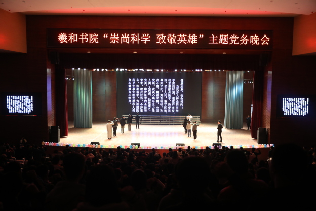 11月29日晚,我校羲和书院党总支在闻徳礼堂举办“崇尚科学、致敬英雄”主题党务晚会。我校党委书记王志凯出席,相关院系、职能部门、书院负责人以及800余名师生共同观看。